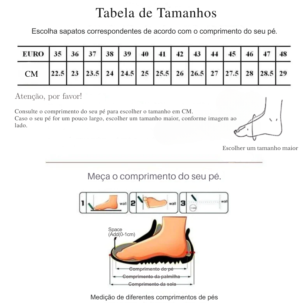 - Segurança e Estabilidade: O solado de borracha antiderrapante oferece maior segurança ao caminhar.