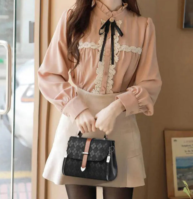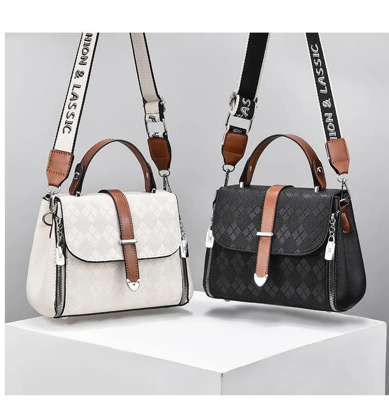 Esta elegante bolsa feminina combina o toque sofisticado do couro de alta qualidade com um design moderno de 'color bump' (splicing de cores), que adiciona um toque de personalidade e estilo único ao acessório.