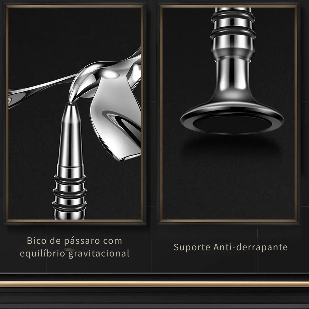 - Design Inovador e Equilibrado: O formato de pássaro com equilíbrio automático chama a atenção e adiciona um toque divertido ao abrir suas bebidas.