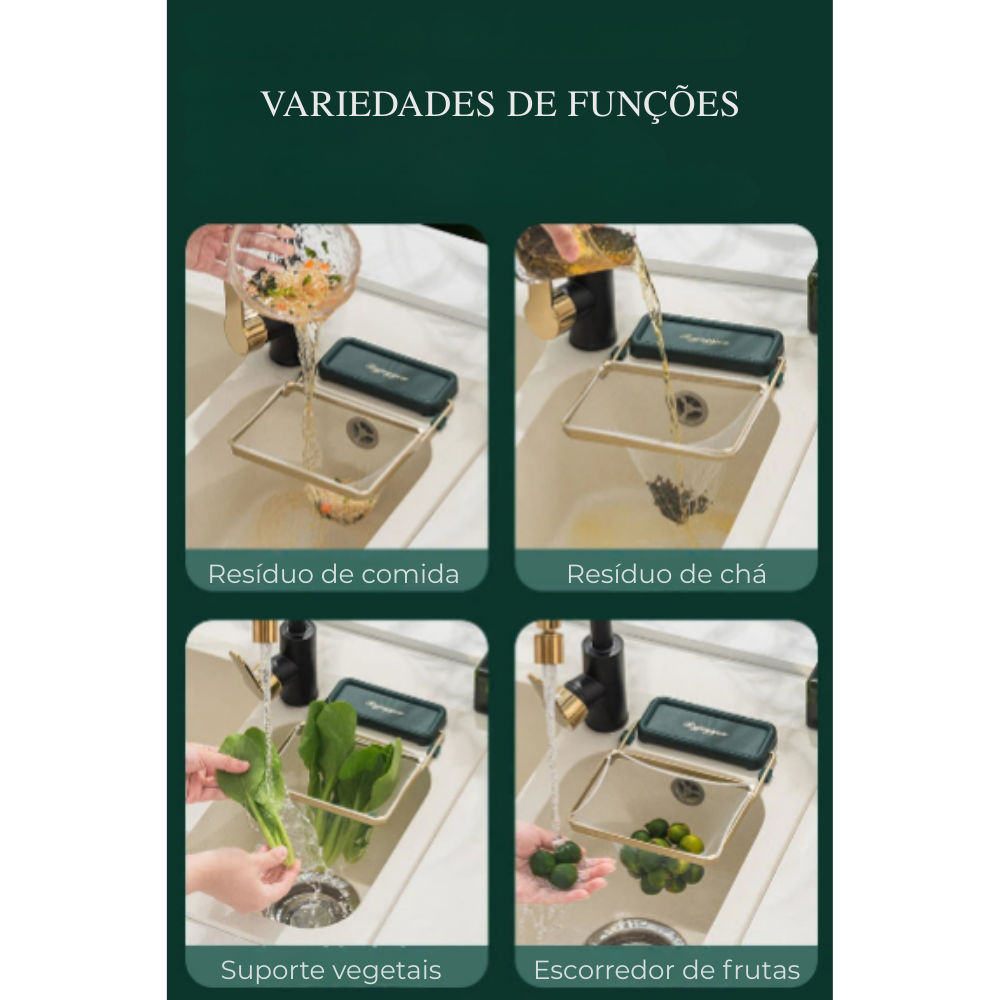 Pia Sempre Limpa: Coletor eficaz para restos de comida, borra de café, cascas e outros resíduos, evitando que vão diretamente para o ralo e causem problemas.