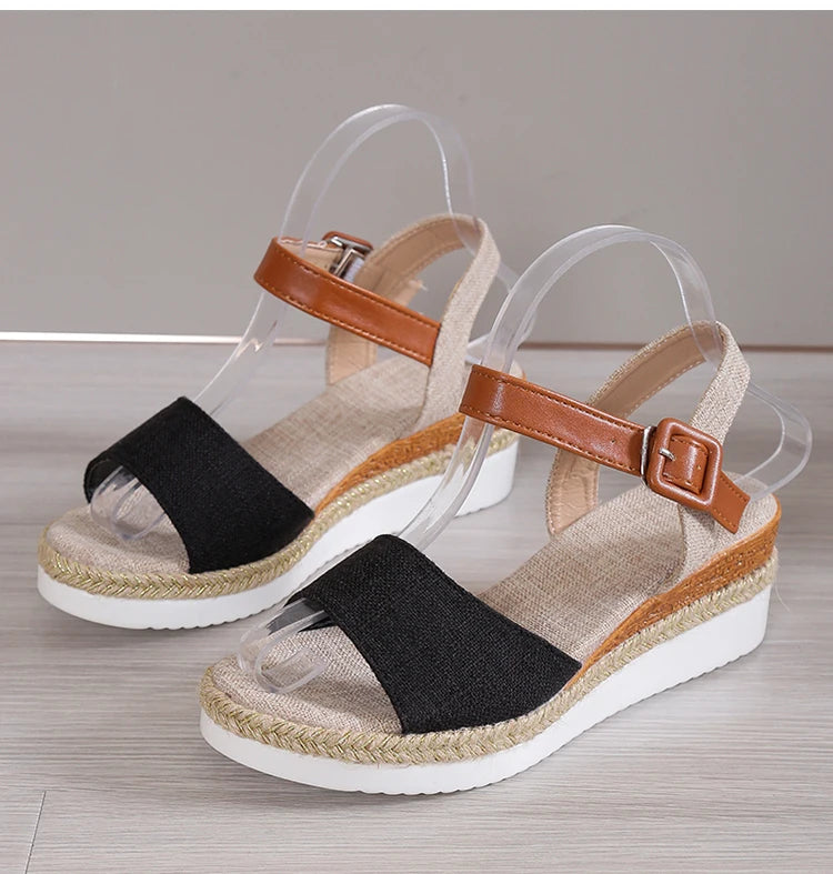 Eleve seu estilo com estas sandálias plataforma elegantes e incrivelmente super confortáveis. Com um design peep toe, salto anabela (wedge) e tira no tornozelo com fivela, elas combinam moda e praticidade. Perfeitas para diversas ocasiões casuais, estas sandálias femininas são leves, possuem palmilha de cânhamo e um salto de altura média (5-8cm) com plataforma baixa (0-3cm) para o máximo conforto. A sola de borracha antiderrapante garante segurança a cada passo.